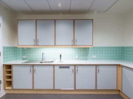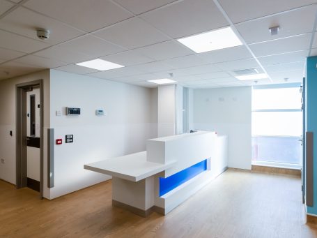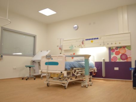 Single storey extension to Paediatric Ward to create 4 private rooms including a High Dependency Unit and a Critical Level 3 Room. The extension is surrounded with bespoke landscaped area to promote a calm environment for the patients.