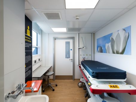 Expansion to existing A & E Department with Modular Construction method. It include phasing to relocate existing UCC and extend existing Major Department with new nurse base, a mental health room, Isolation Rooms, Treatments Rooms, Clean & Dirty Utilities, and curtained cubicles.